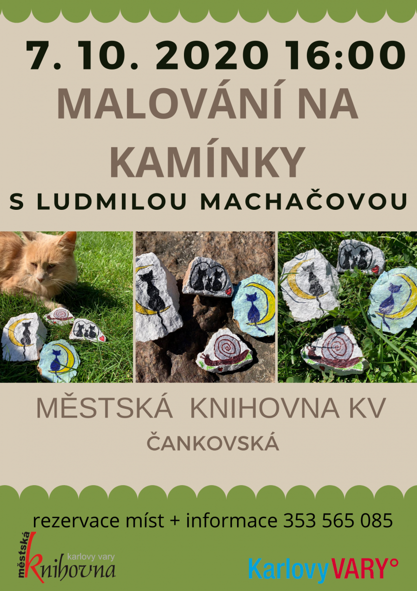 rádi bychom Vás pozvali na výtvarný workshop s Ludmilou Machačovou, který se bude konat 7. 10. 2020 v 16:00 hodin na pobočce ČANKOVSKÁ. Tentokrát budeme malovat na kamínky, materiál bude zajištěn, pokud ale máte vlastní barvy nebo kamínky, můžete si je samozřejmě přinést. Vzhledem k omezenému počtu míst Vás prosíme o rezervaci na telefonním čísle: 353 565 085. Děkujeme za pochopení.