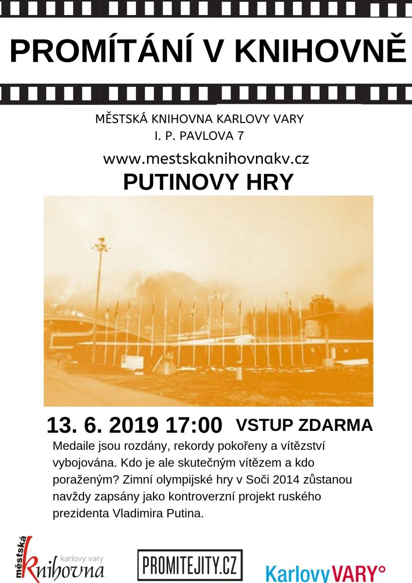 Milí čtenáři, rádi bychom Vás pozvali na pravidelnou projekci do půjčovny pro dospělé na I. P. Pavlova. Tentokrát se bude promítat film s názvem Putinovy hry. Akce začíná tradičně v 17:00 a vítáni jsou všichni.