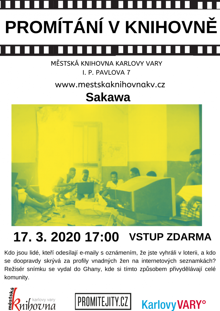 rádi bychom Vás pozvali na pravidelné promítání v půjčovně pro dospělé na I. P. Pavlova 7. 17. 3. 2020 v 17:00 budeme promítat film s názvem SAKAWA.