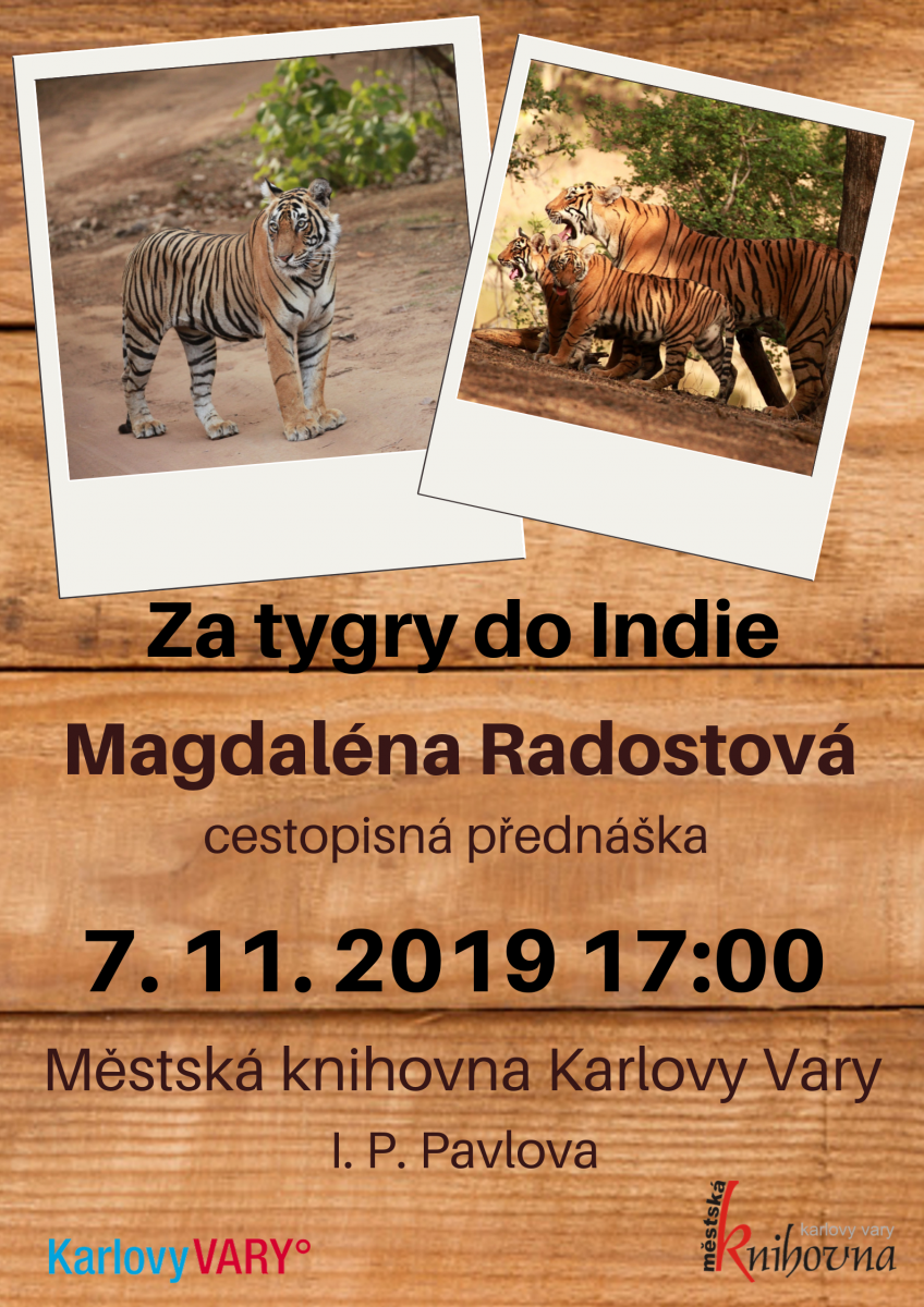 Milí čtenáři, rádi bychom Vás pozvali na cestopisnou přednášku s paní Magdalénou Radostovou, která se uskuteční 7. 11. 2019 v 17:00 v půjčovně pro dospělé na I. P. Pavlova 7. Součástí přednášky bude i promítání fotografií těchto majestátních šelem. Budeme se těšit na Vaši návštěvu.