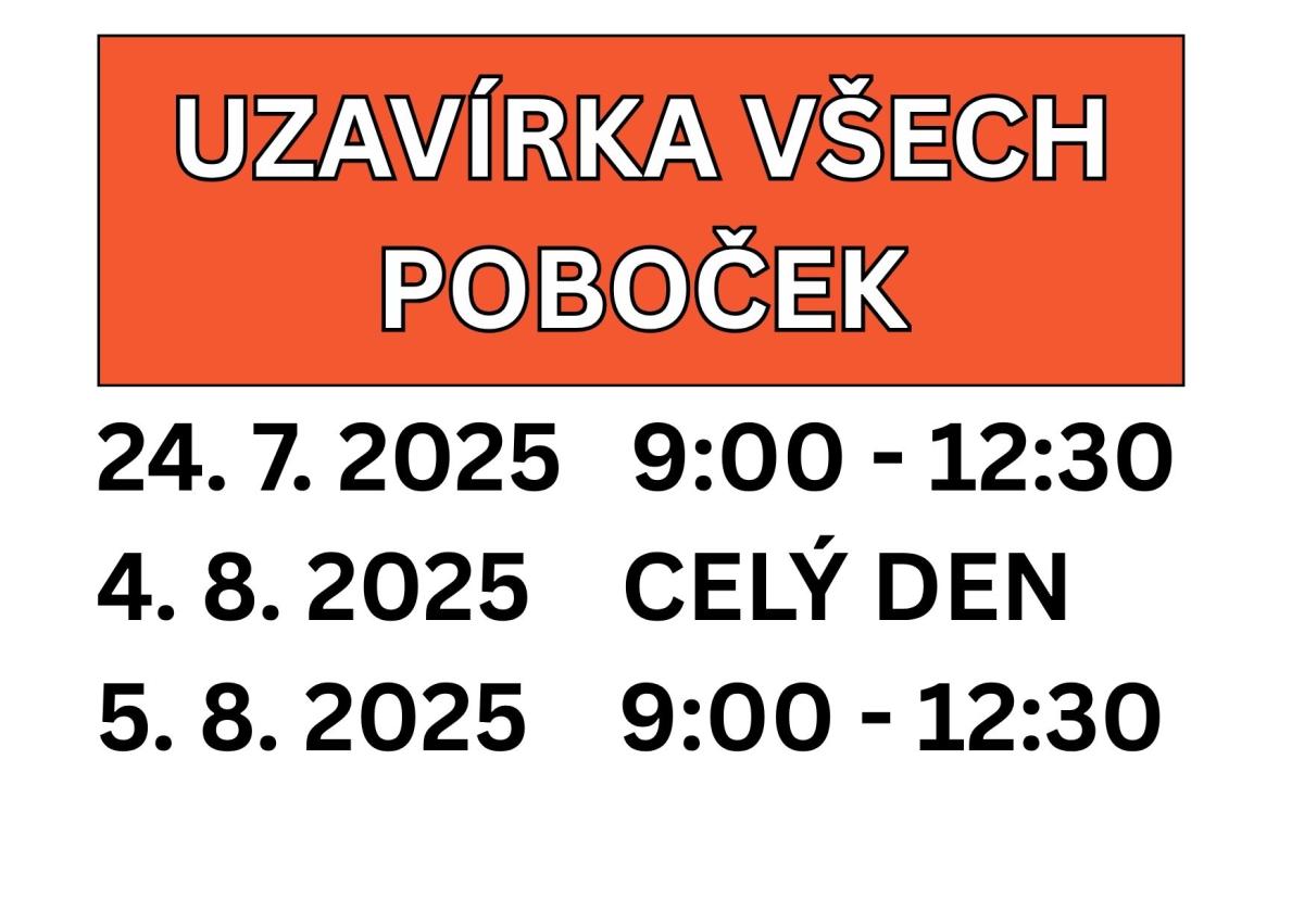 ÚTERÝ 5. 8. 2025 ZAVŘENO od 9:00 do 12:30